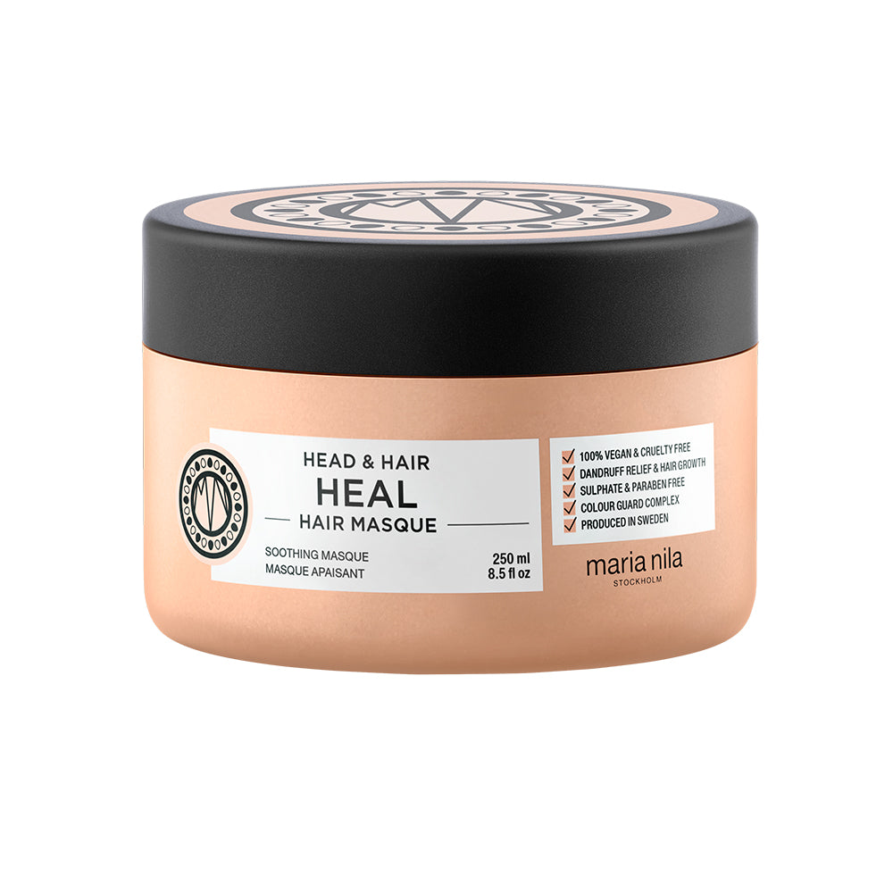Maria Nila is leading the way for sustainable hair care. The Head & Hair Heal Masque is an anti–inflammatory and hair growth stimulating treatment with calming aloe vera extract. The masque is moisturising and healing to prevent dandruff and other scalp problems while stimulating the hair follicles. The Head & Hair Heal Masque has an allergen free perfume with a floral scent of white jasmine and linden blossom.