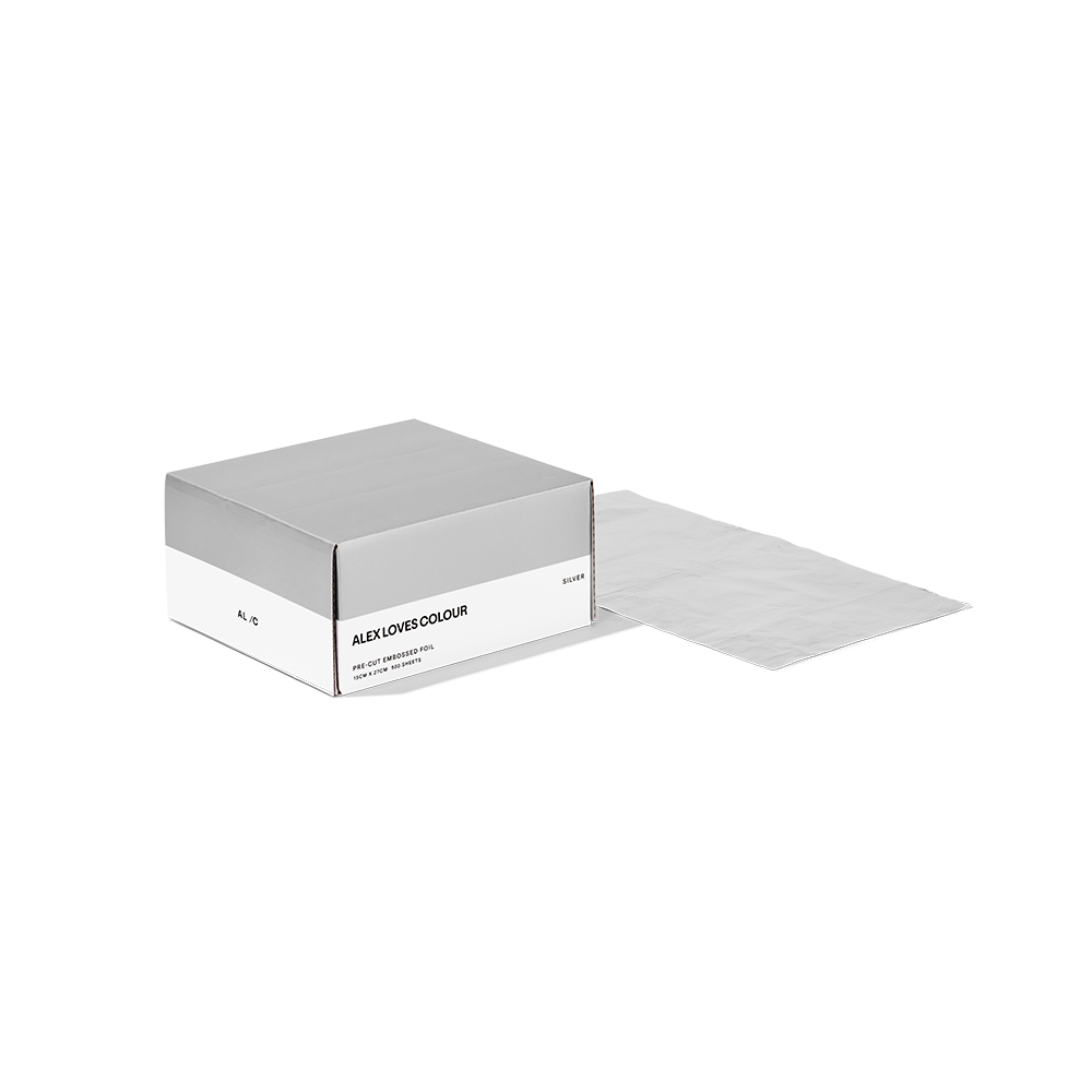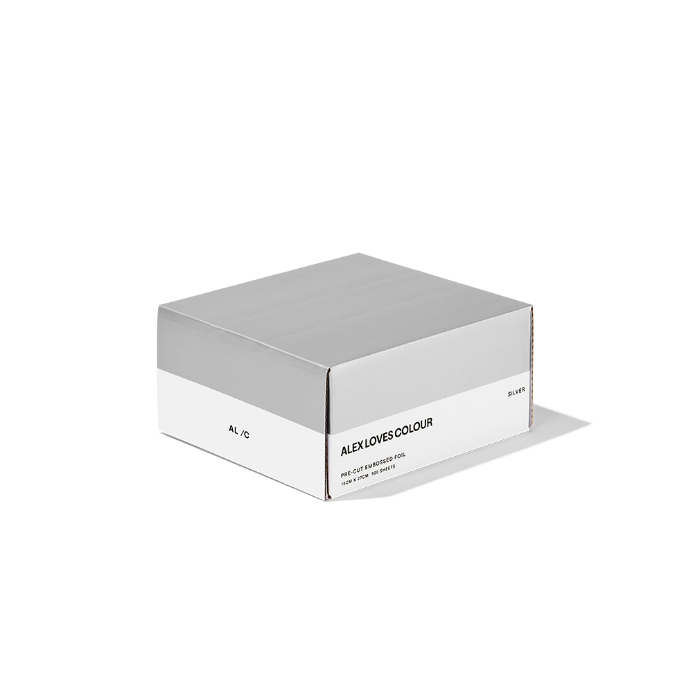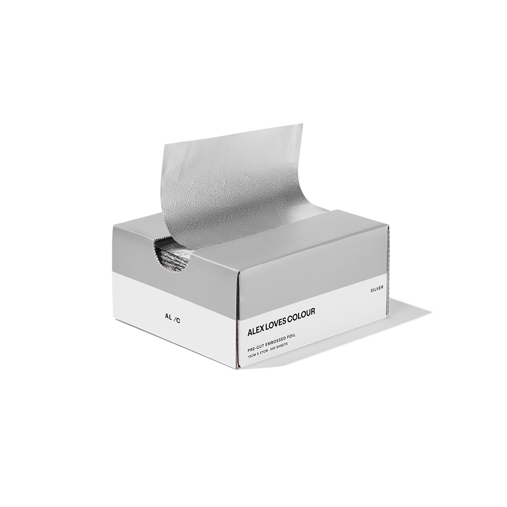 AL /C Hair Foils are created to elevate your hair artistry with a premium embossed texture to give you the perfect grip every time. Offering a sense of ease with convenient pre-cut and measured pieces and their signature effortless dispensing system. Hair Foils by Alex Loves Colour releases their staple Silver Hair Foils into the hands of their fellow artists, allowing you to expand your imagination into a dream-like galaxy as you work.