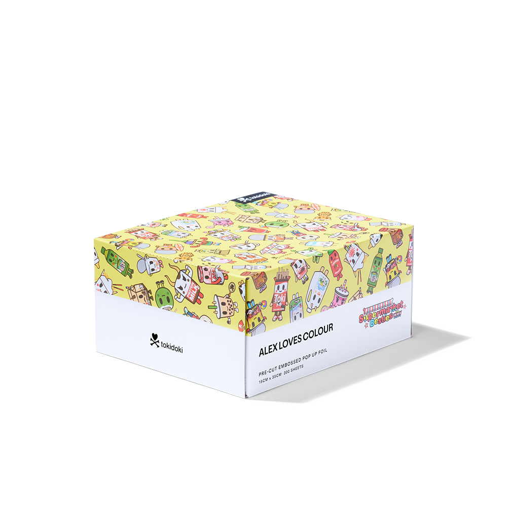 AL /C Hair Foils are created to elevate your hair artistry with a premium embossed texture to give you the perfect grip everytime. Offering a sense of ease with convenient pre-cut and measured pieces and their signature effortless dispensing system. Created in collaboration with Tokidoki, Supermarket Besties is where playful creativity meets irresistible charm. This exclusive hair foil design celebrates Tokidoki's iconic, bold and colourful characters, adding a touch of fun and flair to your foiling routine.